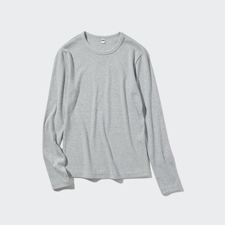 Uniqlo Women Soft Ribbed Fitted Crew Neck Long Sleeved T-Shirt Green - Uniqlo Paris